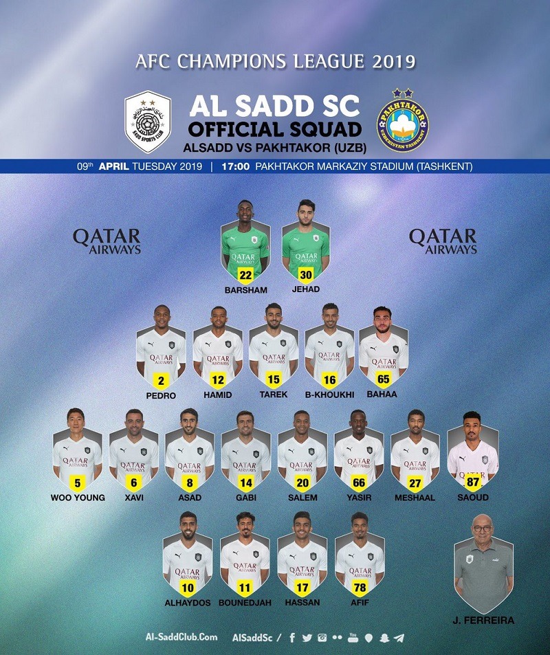 Қатарликлар сафида Хави ҳам қайтган ва у эртанги ўйинда майдонга тушиши кутилмоқда. Мазкур жамоалар иштирокидаги ўйин эртага “Пахтакор” стадионида бўлиб ўтади ва 19:00да бошланади.